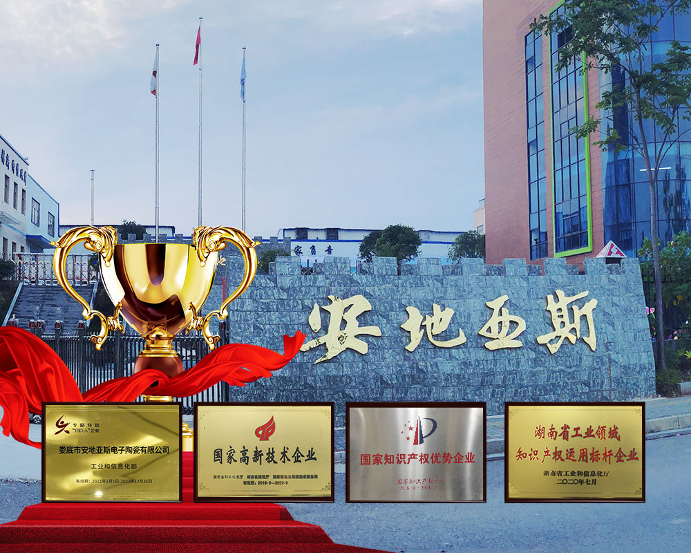 婁底市安地亞斯電子陶瓷有限公司成立于2004年, 是一家集新能源汽車陶瓷零部件、智能傳感器陶瓷、電子信息陶瓷、軌道交通、航空航天陶瓷、石墨匣缽等研發(fā)、生產(chǎn)、銷售于一體的國家專精特新小巨人企業(yè),也是一家擁有知識產(chǎn)權(quán)和發(fā)明專利的高科技企業(yè)。